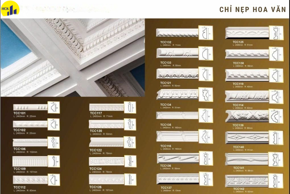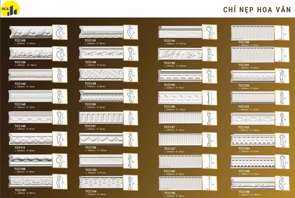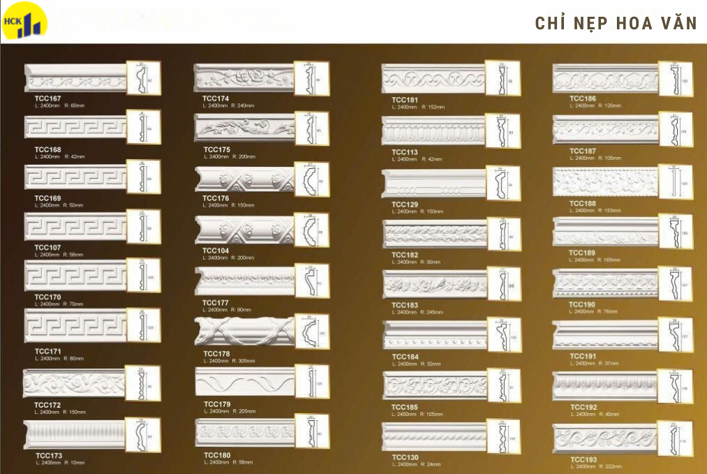 Chỉ nẹp hoa văn là mẫu phào PU trang trí cao cấp được thiết kế với hoa văn tinh tế, sắc nét, giúp tạo điểm nhấn sang trọng cho trần, tường, khung cửa và các chi tiết nội thất.