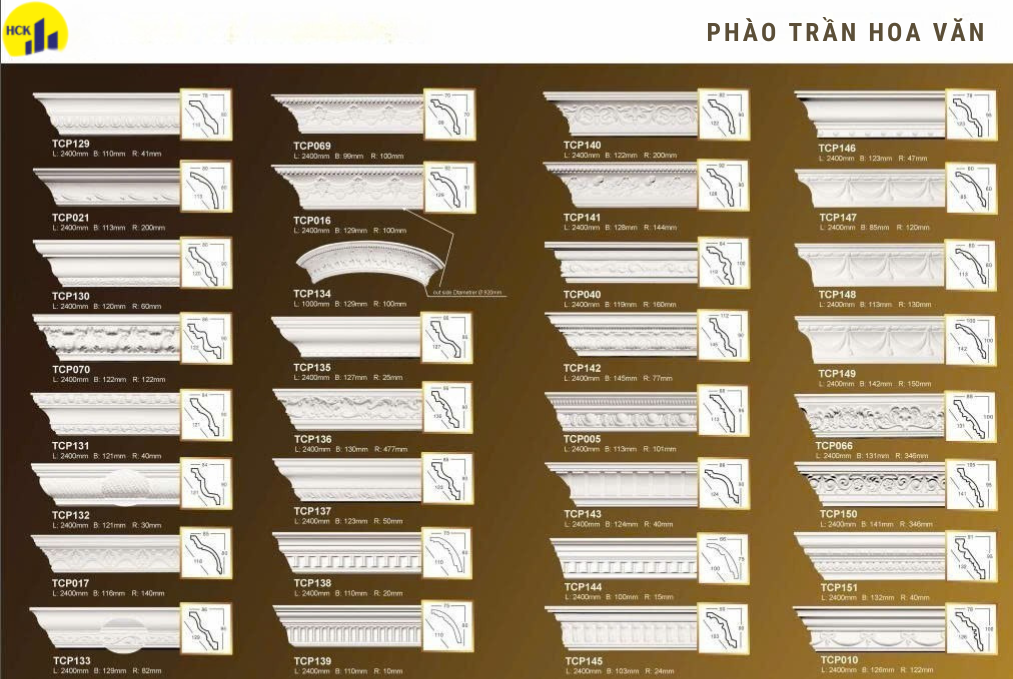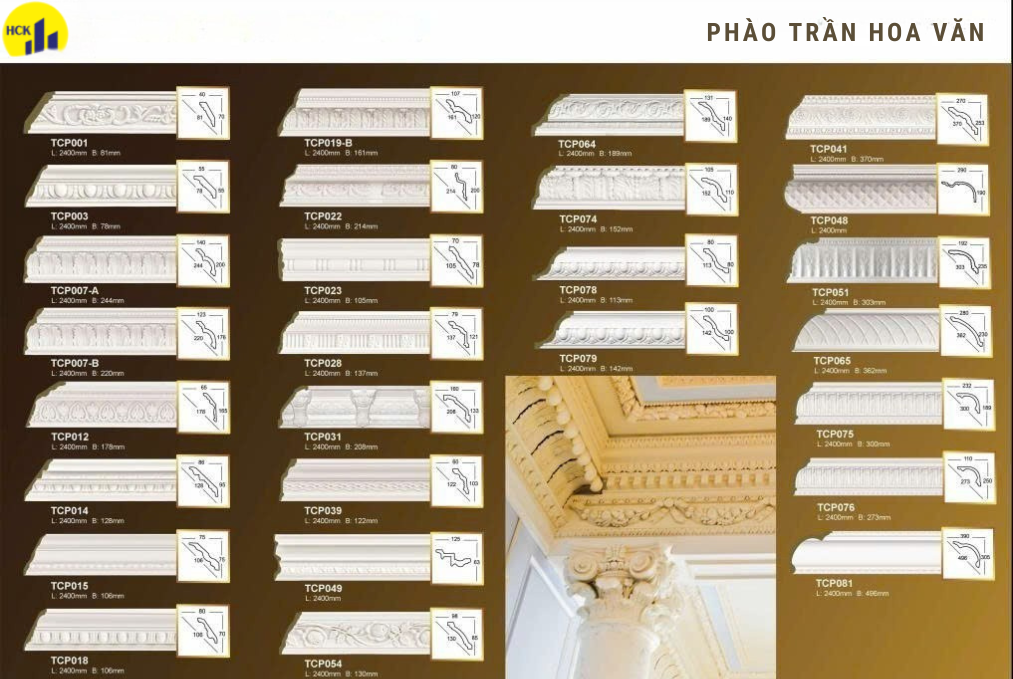 Phào trần hoa văn là lựa chọn lý tưởng cho những công trình yêu cầu tính thẩm mỹ và độ tinh xảo cao.